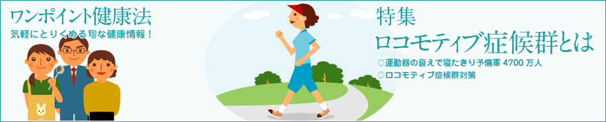 ロコモティブは機関車、移動という意味ですが、医学的には、関節、骨、筋肉などの運動器を意味します。運動器が衰え、段差で転倒や骨折する人が急増していますが、特にひざ痛、腰痛症、骨粗鬆症の人は注意が必要です。