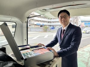 担当エリアまで車で移動。10時半頃からお客様宅を訪問します。